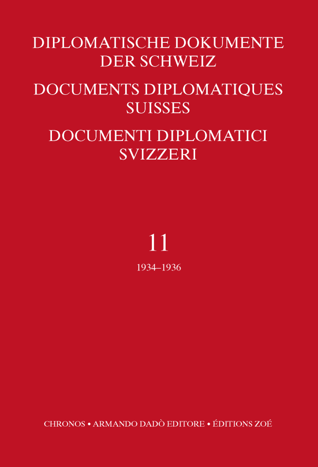 Print Edition DDS, vol. 11 (1934–1936) ISBN 3-7165-0633-8 Diplomatic Documents of Switzerland Volume 11 (1934–1936) edited by Prof. J.-C. Favez, Université de Genève bound, with dust cover, 16x24cm, 1989. LXXXIV and 1'020 pages. CHF 150.– pdf Documents in Dodis Documents in Dodis ISBN 3-7165-0633-8