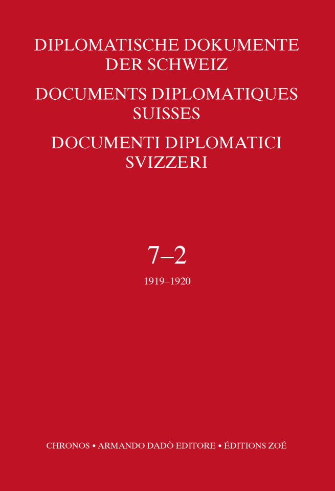 Print Edition DDS, vol. 7/2 (1919–1920) ISBN 3-7165-0497-1 Diplomatic Documents of Switzerland Volume 7/2 (1918–1919) edited by the Commission Office bound, with dust cover, 16x24cm, 1984. LXXXVIII and 924 pages. CHF 150.– pdf Documents in Dodis Documents in Dodis ISBN 3-7165-0497-1