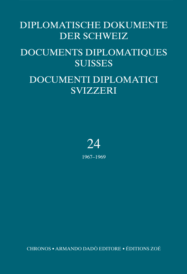 Le volume 24 aborde de nombreux aspects des relations extérieures de la Suisse de 1967 à 1969. Outre les relations avec les Etats voisins et la coopération avec les autres Etats neutres, la question de l’intégration européenne occupe une place centrale. Les relations économiques et financières, les rapports avec les organisations internationales, la coopération au développement et les «bons offices» sont influencés par des événements internationaux tels que la guerre du Vietnam, la guerre des Six Jours, la guerre du Biafra et la crise en Tchécoslovaquie. Plusieurs visites de conseillers fédéraux, également en Europe de l’Est, en Amérique latine, en Asie et en Afrique, documentent une différenciation croissante des intérêts de la politique étrangère.